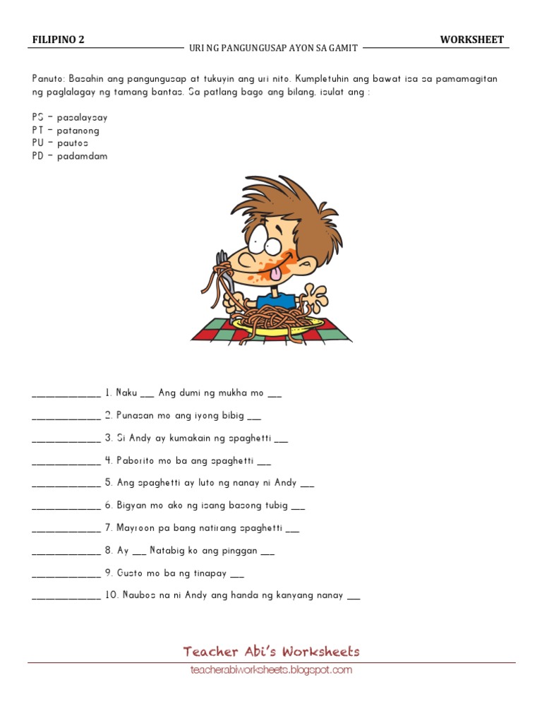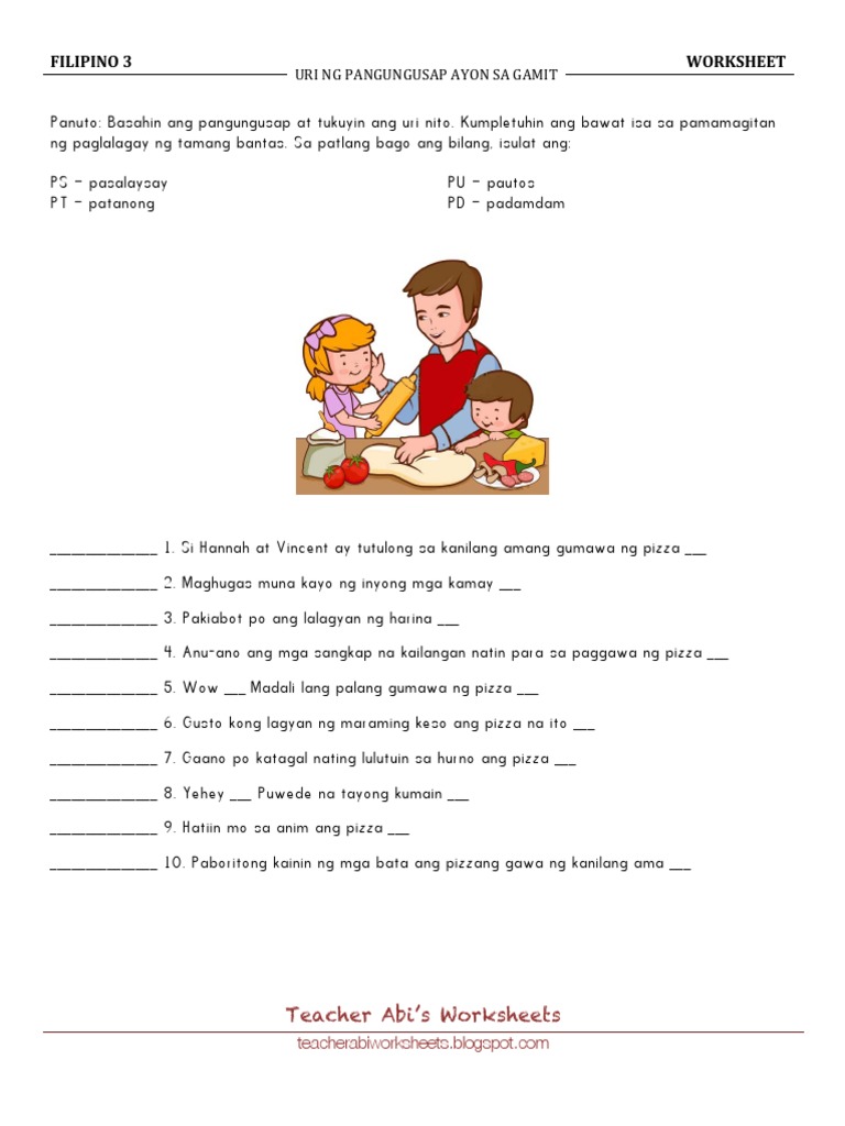 Uri ng Pangungusap Ayon sa Gamit Isulat sa patlang ang uri ng pangungusap. These worksheets are appropriate for first and second grade students. The five pdf worksheets below are about the five types of Filipino sentences.